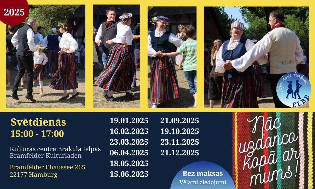 "Nāc uzdanco kopā ar mums!" - nu jau 8.gadu aicinām uz sadancošanos kopā ar Latvju dančiem Hamburgā "Elbe" un tās vadītāju Dinu Šreiberi.