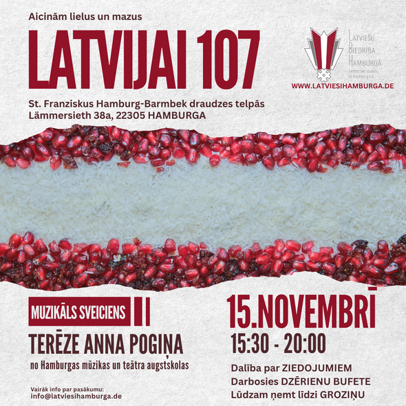 Vairāk info par pasākumu, rakstot uz info@latviesihamburga.de